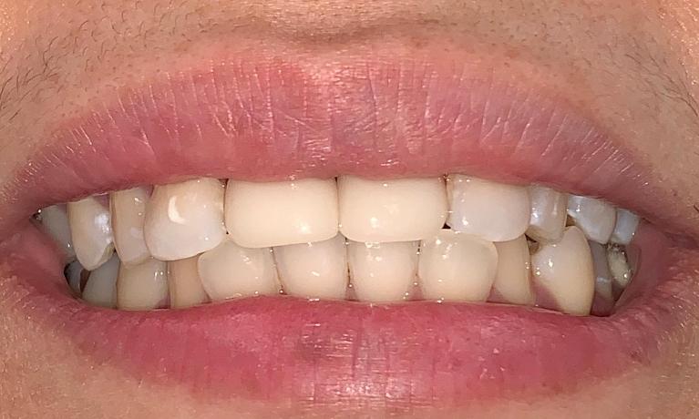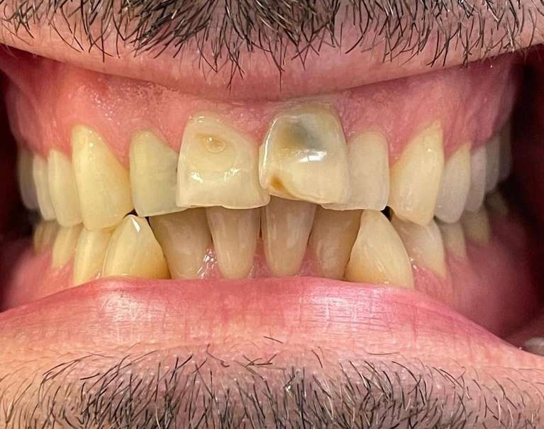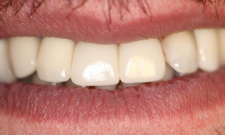 To improve the look of the patient's smile we fixed the spacing of his front teeth with Veneers.