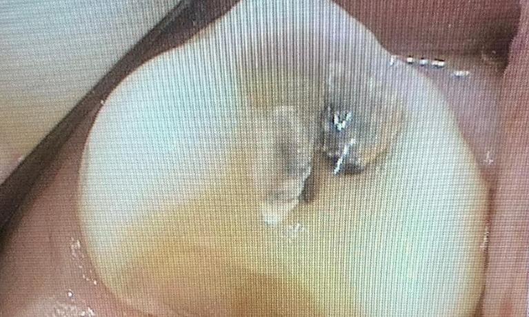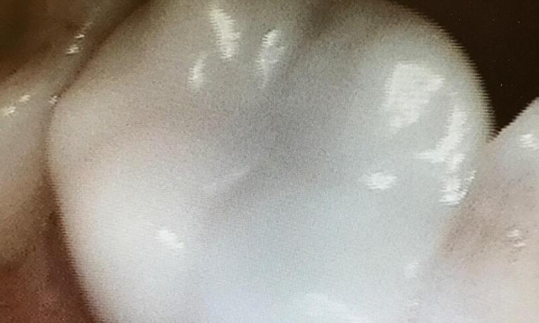 Chipped old filling with recurrent decay was restored with Porcelain Inlay in less than 2 hours. No second visit!