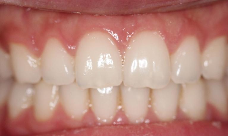 Spacing-- Spaces between the teeth. After 29 months of Invisalign treatment, teeth have aligned properly for a healthier mouth.