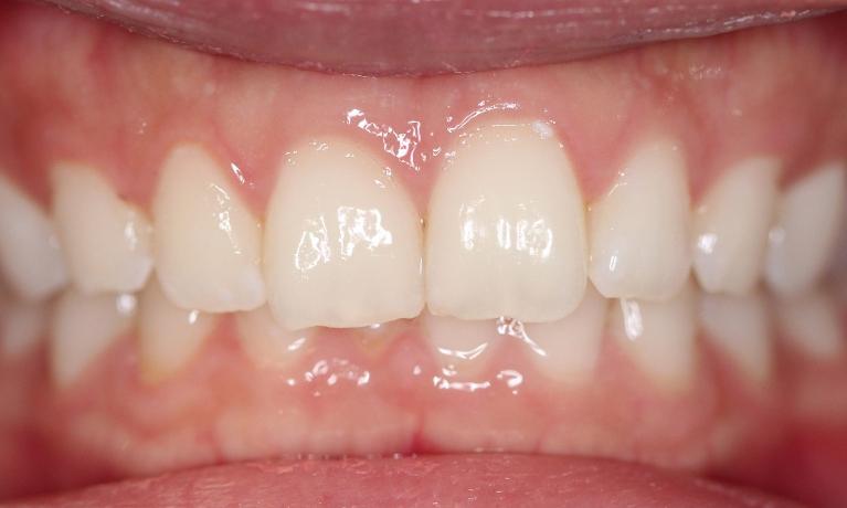 Spacing-- Some potential issues: Food lodges between teeth, risk of sore, tender gums, risk of periodontal disease. After one year of Invisalign treatment, teeth have aligned properly for a healthier mouth.