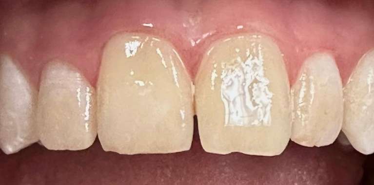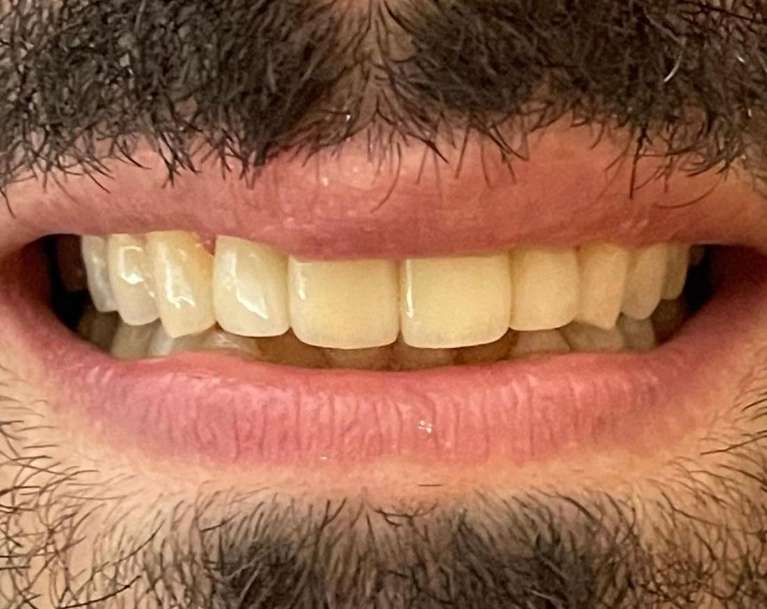 To improve the look of the patient's smile we fixed the spacing of his front teeth with Veneers.