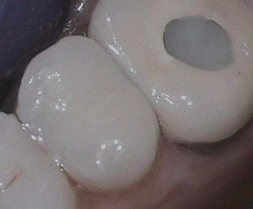 Chipped old filling with recurrent decay was restored with Porcelain Inlay in less than 2 hours. No second visit!